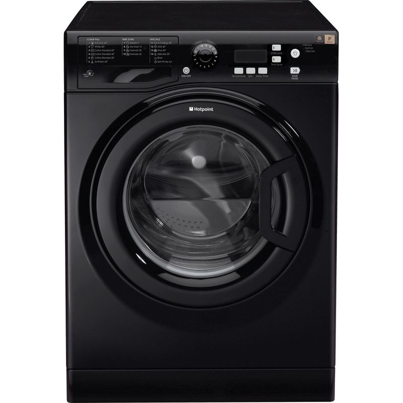 This Hotpoint freestanding front loading Washing Machine features: a spacious 7kg capacity. A fast, resource-efficient 1400 revolutions per minute spin speed. Black colour.