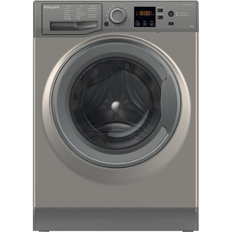 This Hotpoint freestanding front loading Washing Machine features: a spacious, large 10kg capacity. A fast, resource-efficient 1600 revolutions per minute spin speed.