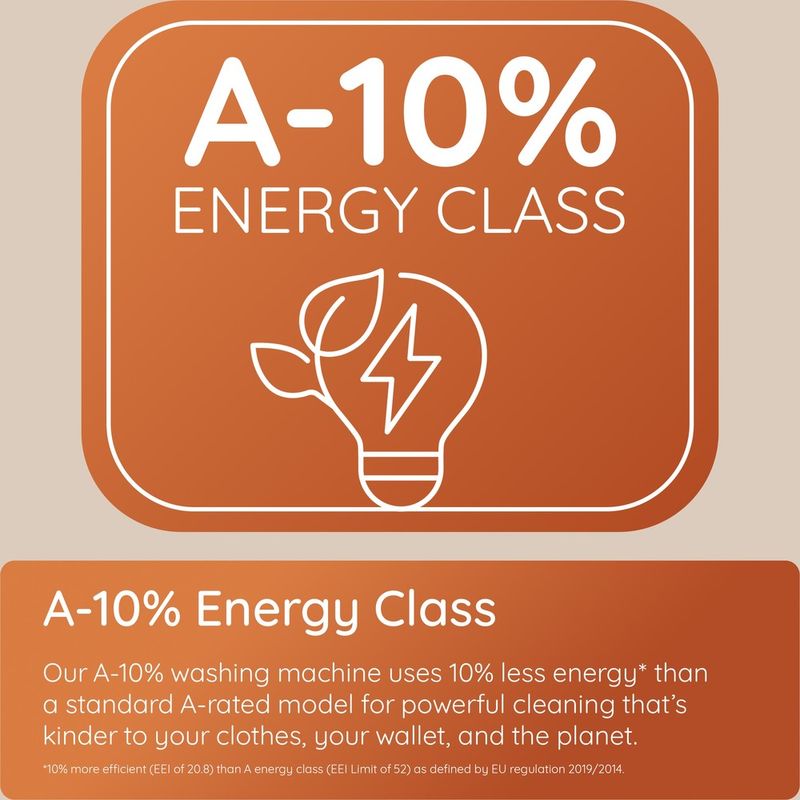 Give your laundry routine an upgrade with the Hotpoint 10kg washing machine, designed to deliver powerful cleaning, long-lasting fabric care and impressive energy efficiency. With its spacious drum and graphite finish, it’s a practical and stylish addition to any home. Tackle everyday stains thanks to Anti Stain, a dedicated programme that removes 24*common household stains without the need for pre-treating. Optimised temperatures and targeted drum movements lift marks while protecting fabrics, leaving your clothes clean. Help your favourite outfits hold onto their colour for longer with ColourCare, which washes effectively at lower temperatures to preserve the brightness and softness of your clothes. For homes with pets, PetHairCare adds a gentle prewash and extra rinse to lift stubborn pet hair, keeping fabrics fresh and comfortable. When you’re in a rush, Full Load 45' lets you wash a full 10kg load in just 45 minutes, delivering great results fast. For clothes that only need a quick refresh, SteamCare provides an efficient alternative to a full wash. In just 17 minutes, steam penetrates fibres to loosen creases by up to 58% and reduce ironing time by 28%**, helping your clothes look and feel ready-to-wear sooner. If hygiene is a priority, the Anti Allergy cycle offers extra peace of mind by removing bacteria through a high-temperature wash. Ideal for sensitive skin or baby clothes. Rated A-10%, this washing machine uses 10% less energy than the minimum required for A-class performance***, helping lower your energy bills while still delivering the reliable cleaning Hotpoint is known for. *24 types of stains: coffee, tea, fruit juice, collar stain, salad dressing, mayonnaise, ketchup, makeup, blood, sweat, red wine, pudding, mud, meal, chocolate, grass, egg, baby food, machine oil, coke, butter, jam, curry, coal. **Tested by 3rd party laboratories. ***10% more efficient (EEI of 20.8) than A energy class (EEI Limit of 52) as defined by EU regulation 2019/2014.