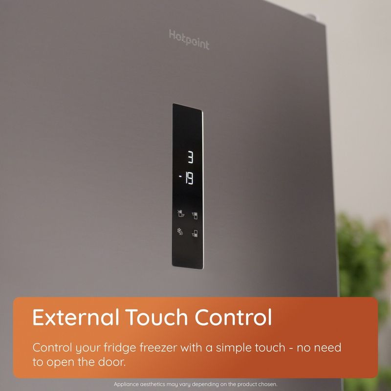This Hotpoint fridge freezer offers a balanced 50/50 split between fridge and freezer space, making it a brilliant choice for busy households. Dual No Frost circulates cool air evenly through both compartments, helping to prevent ice and moisture build-up. Plus, the quiet, durable Inverter Compressor quickly restores the perfect temperature when the door is opened, helping maintain freshness while keeping energy bills in check. Inside the fridge, Even Flow technology gently distributes consistent, cool air across every shelf, maintaining a stable temperature that keeps your food crisp and flavourful for up to 30% longer*. The dedicated VitalCare drawer recreates the natural daylight cycle inside your fridge, helping to keep your fruit and vegetables fresh, full of nutrients, and rich in antioxidants for up to 7 days**. The freezer is just as thoughtful, with a Fast Freeze function that rapidly drops the temperature to lock in freshness the moment you unpack your groceries. Even the little details are designed with real life in mind – like 90° door hinges that make it easy to place the fridge freezer in tight corners or against walls without compromising on access. *Weight loss and sensory evaluation tests used for the determination of shelf life were conducted internally by Beko Corporate on carrot, fresh-cut iceberg lettuce, fresh-cut tomato, strawberry, salami, and kashar cheese samples stored in the EvenFlow refrigerator and control refrigerator (without the EvenFlow technology) for a 12-day period. Actual results may vary based on food type and usage conditions. **Tested by Intertek for fruits and vegetables (blueberry, yellow pepper, tomato, parsley) directly exposed to the light technology compared to a refrigerator without the same technology installed (and compared to Day 0) over a 7-day period while preserved in the crisper.