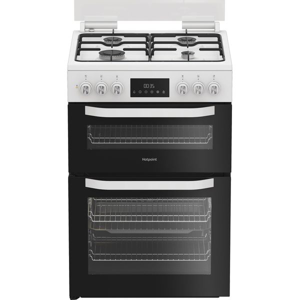 Hotpoint 60cm Freestanding Dual Fuel Double Cooker with Glass Lid