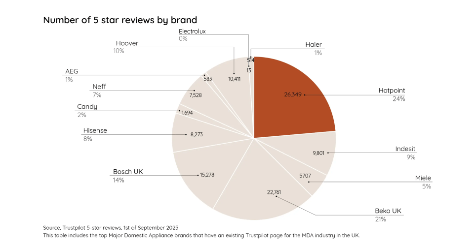 At Hotpoint, we have the highest ratings of 5* Trustpilot reviews in the major domestic appliance industry, making us the UK's most trusted major domestic appliance brand.