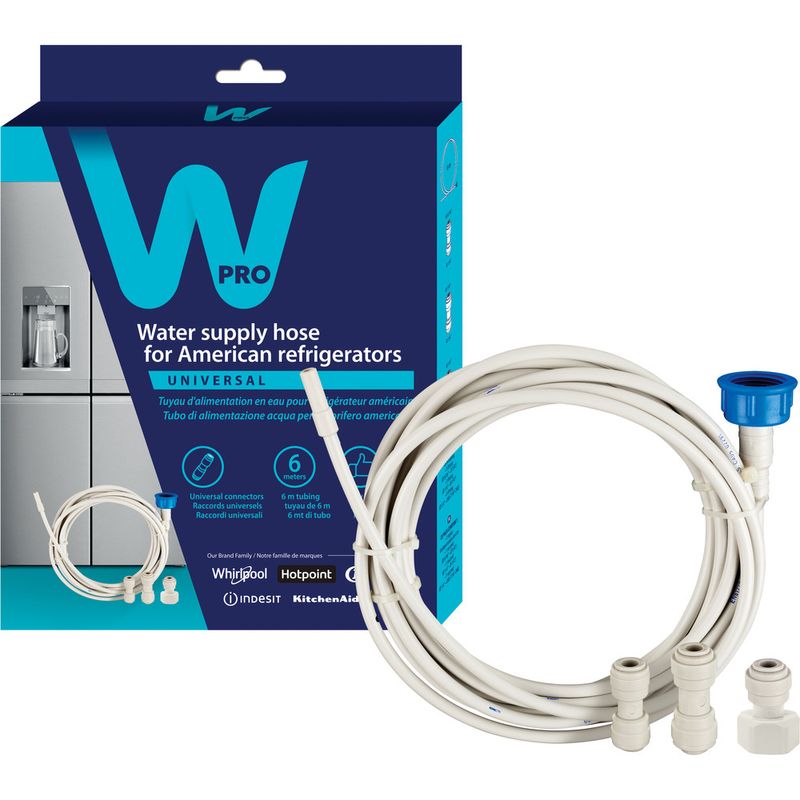 The Wpro water supply hose kit for American style fridge freezer is the perfect solution to keep your applicance running properly. It allows you to easily connect your appliance to your home's water supply. The pack includes all parts you need: a food safe 6m pipe, a set of 6/35 connectors and a set of 20/27 converters. All selected components are of high quality and thanks to the connections provided, there is no need for tools to assemble or disassemble the pipe and connections. Installation is quick and effortless.